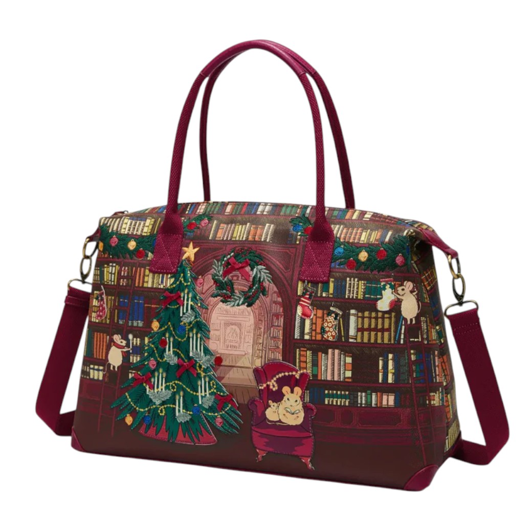El bolso de fin de semana Vendula Christmas Library Bonnie está confeccionado en suave piel vegana y es fácil de llevar gracias a sus grandes asas o su ancha correa para el hombro.