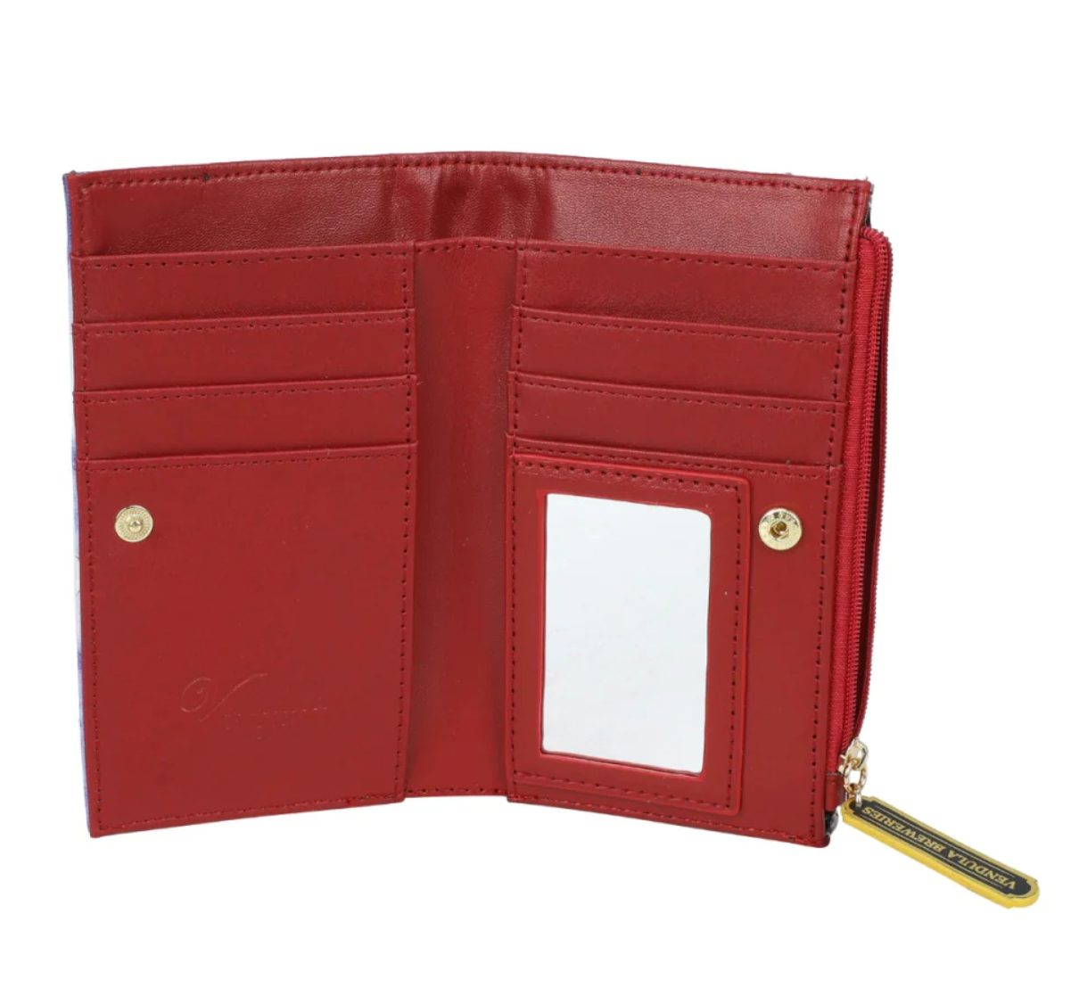 Cuenta con un bolsillo con cremallera para las monedas, multiples ranuras para tarjetas y espacio para billetes.